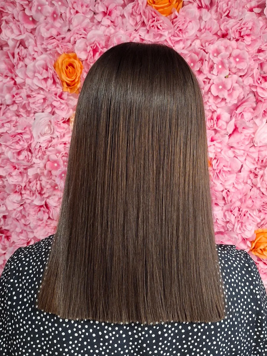 Farbowanie całej długości włosów na jeden odcień . Koloryzacja jednotonowa jest idealna dla osób, które chcą uzyskać jednolity odcień, klasyczny efekt bądź przykryć siwe włosy.